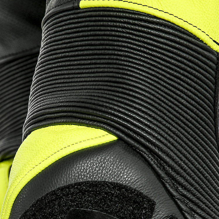 Sürüş sırasında şekil değiştirip hareket ettikçe giysinin vücuda uyum sağlama kapasitesini artıran en stratejik yerlere yerleştirilen elastikli ekler.